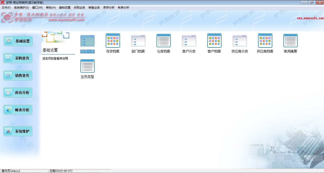 夢(mèng)想-商業(yè)企業(yè)購(gòu)銷存單機(jī)版 為簡(jiǎn)版企業(yè)業(yè)務(wù)管理軟件,軟件界面簡(jiǎn)潔、美觀、易用,涉及采購(gòu)、銷售、庫(kù)存業(yè)務(wù),可以滿足各類小型商業(yè)企業(yè)購(gòu)銷存管理的業(yè)務(wù)需求,幫助企業(yè)快速建立基礎(chǔ)管理程序和規(guī)范邏輯,輕裝出發(fā)。